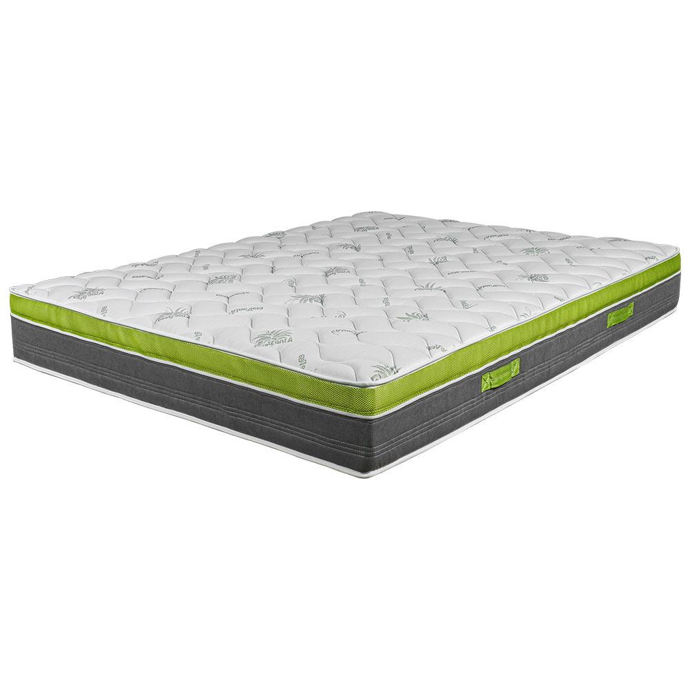 Rivestito in tessuto di aloe vera, noto per le sue proprietà benefiche per la pelle e la salute, il materasso è morbido, resistente, traspirante, antiacaro e antibatterico. La fascia perimetrale in tessuto 3D traspirante favorisce la circolazione dell'aria, mantenendo il materasso fresco e asciutto durante la notte. Le pratiche maniglie laterali facilitano la movimentazione del materasso.